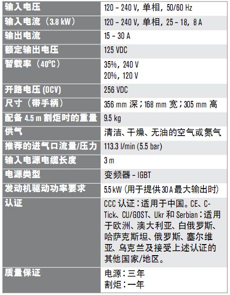 切割作業(yè)。當(dāng)以最大建議輸出 25 A 運行本系統(tǒng)時,