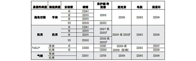 割炬易損件可提供各種數(shù)量的噴嘴和電極。有關更多信息,請聯(lián)系您的經(jīng)銷商。